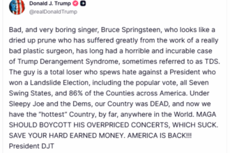 1Ο Τραμπ ζητάει από τους υποστηρικτές του να μποϊκοτάρουν τις συναυλίες του Μπρους Σπρίνγκστιν3 Απριλίου 2026