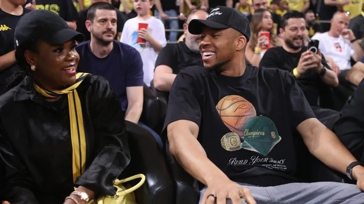 Μαζί τους ήταν, ακόμη, η σύζυγος του Κώστα Αντετοκούνμπο -για τον οποίο η οικογένεια επέλεξε να παρακολουθήσει διά ζώσης το ματς- Ντέμη, με τη μικρή κόρη τους, Βελένα. Την οικογένεια συνόδευε, επίσης, ο ιδιοκτήτης της ΚΑΕ Άρης, Ρίτσαρντ Σιάο.